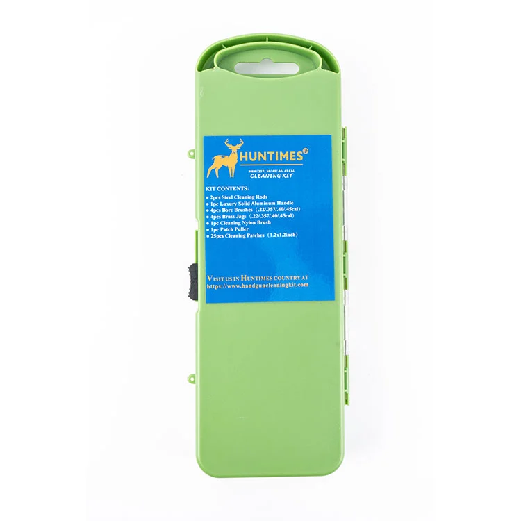 Vores 9 mm/.357/.38/.40/.44/.45 Caliber Cleaning Kit designet til din pistol og har OEM Custom Grip -logo og emballage. Dette alsidige rengøringssæt er perfekt til jagtentusiaster og leveres med et sæt tilbehør, der er skræddersyet til dine specifikke behov. Sættet inkluderer to messingrengøringsstænger, et holdbart plasthåndtag, en rengøring af nylonbørste, femogtyve rengøringsplaster, fire kammerbørster af forskellige kalibre, fire messing-serrationer, en plastik patch-puller og en messing patch-puller.