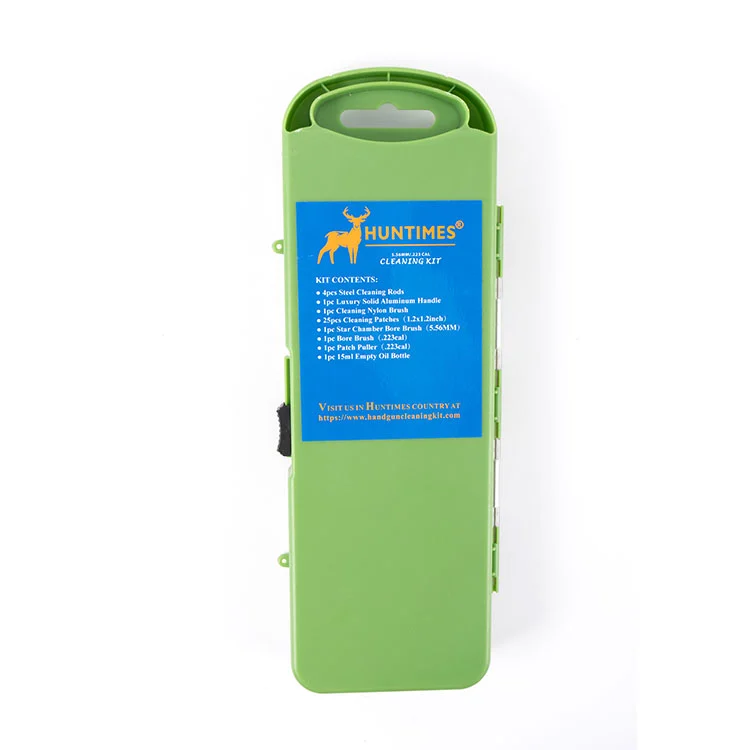 5.56MM/.223 Cal Gun Cleaning Kit fra Shanghai Hunting Speed Industry&Trade Co,Ltd er af overlegen kvalitet og holdbarhed, designet til dem, der sætter pris på det bedste jagttilbehør. Dette omfattende sæt inkluderer fire messing-rensestænger, et brugerdefineret håndtag, en 3-i-1 kammerbelysning, en rensebørste med 8-32 tråde, 25 1,2x1,2 tommers rengøringsplastre, en kammerbørste til 5,56 mm, en kammerbørste til .223cal 2 tråde med samme lige stålplukke med 8-3 tråde, en pletfri stålpluk med 8-3 tråde. specifikationer, en skraber med de samme specifikationer, en 90 graders pick med 8-32 tråde, fire uldkammerrensepuder og en kammerrensepudeadapter (8-32 til 5/16-26). Køb Essential 5.56MM/.223 Cal Gun Cleaning Kit i dag og forbedre din nøjagtighed på dit næste jagt- eller skydeeventyr.